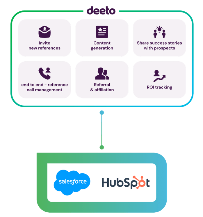 Deeto automatiserar insamlingen av referenser genom anpassningsbara flöden som kunderna faktiskt tycker om att delta i. Referenserna kan enkelt delas på sociala medier, integreras i marknadsföringskampanjer och visas på företagets webbplats.